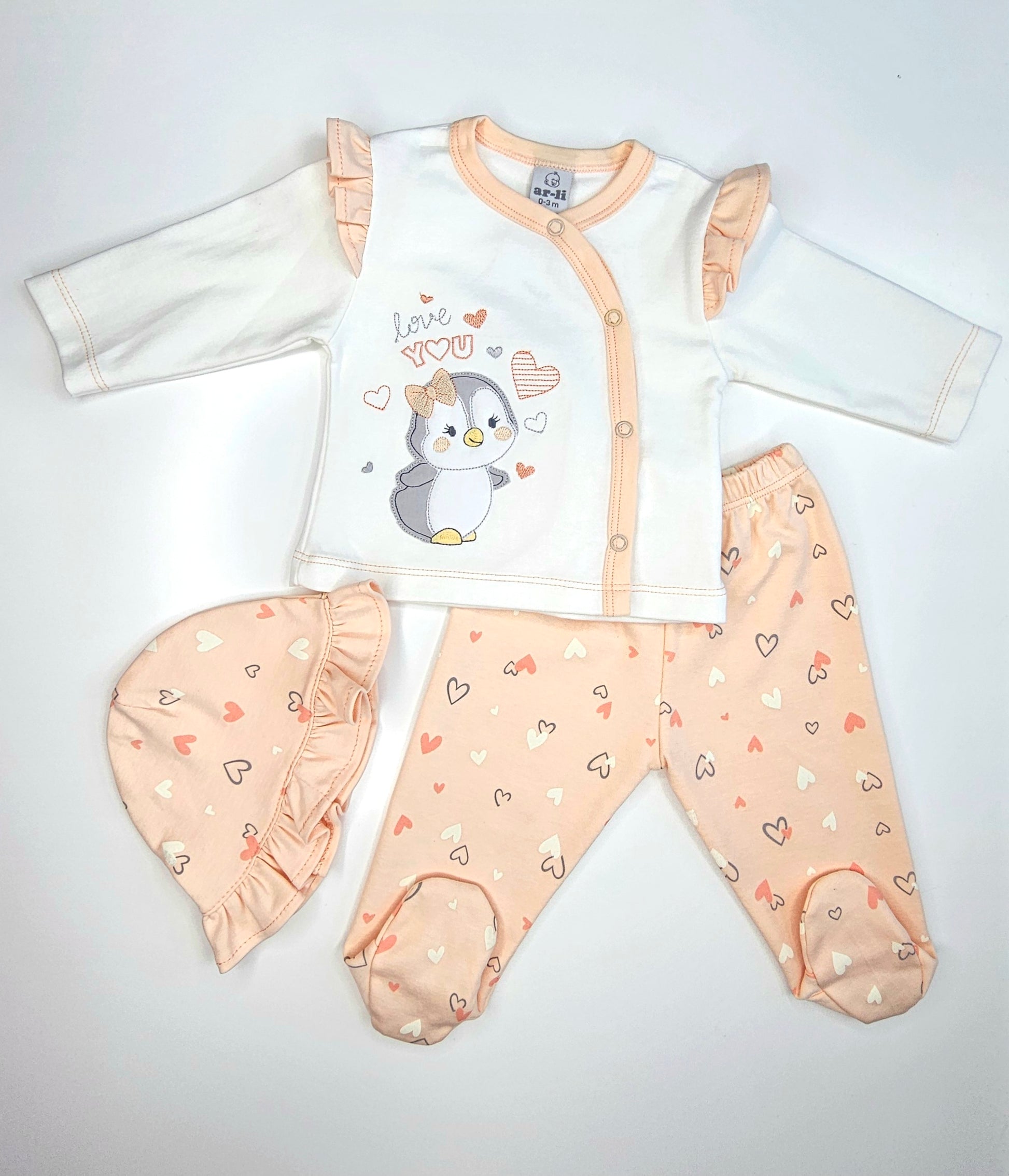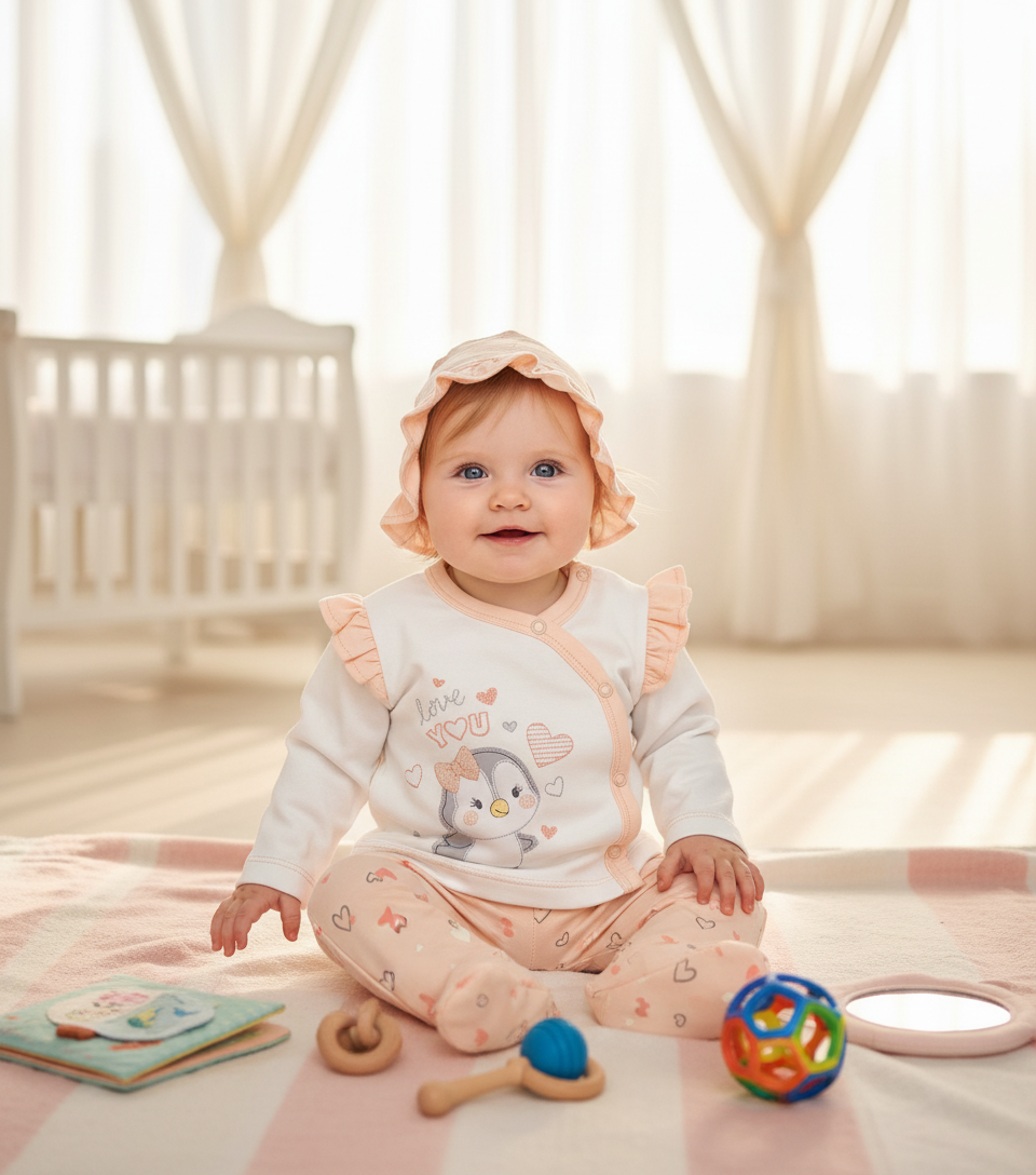 El CONJUNTO BEBITA PINGUI LOVE ofrece una delicada combinación de colores pastel, en un suave tejido de algodón PIMA. Perfecto para brindar la máxima comodidad a tu bebé y darle un toque dulce y moderno a su apariencia. Convierte su rutina en un momento de amor y ternura con cada uso.