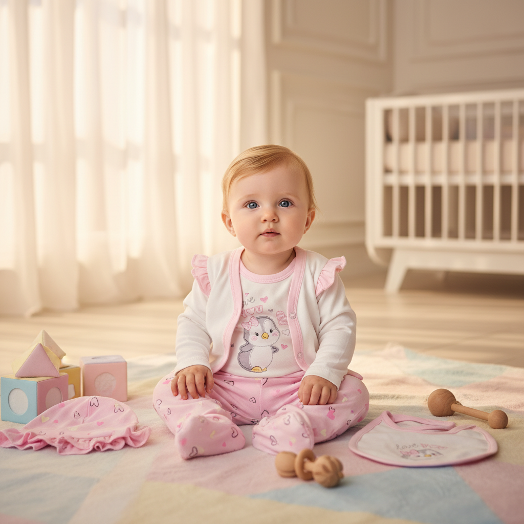 CONJUNTO DE 5PZ PARA BEBITA PINGUI LOVE