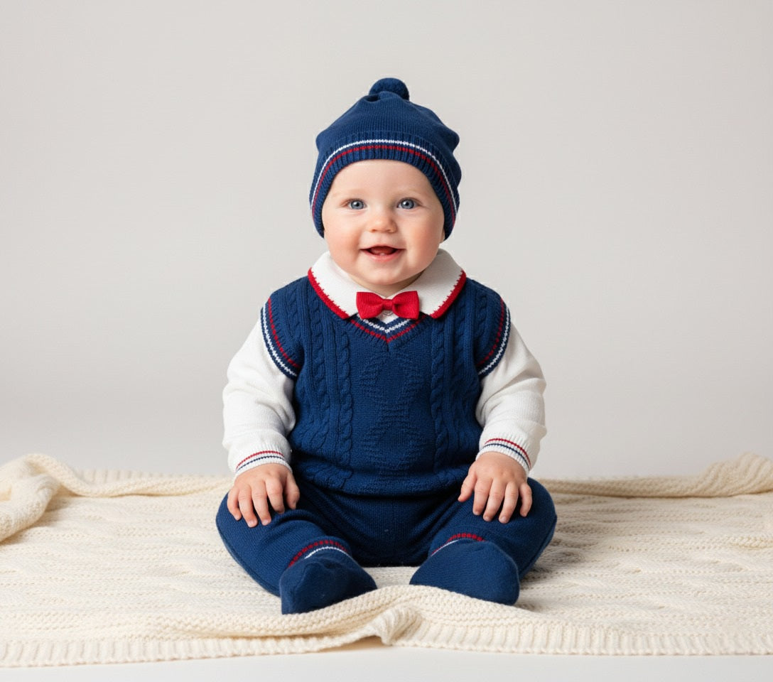El set de gala azul es ideal para niños. Cada set contiene un elegante ajuar de gala, completamente hecho de hilo azul. Perfecto para ocasiones formales y eventos especiales. ¡Con este set, tu hijo se sentirá como un príncipe!