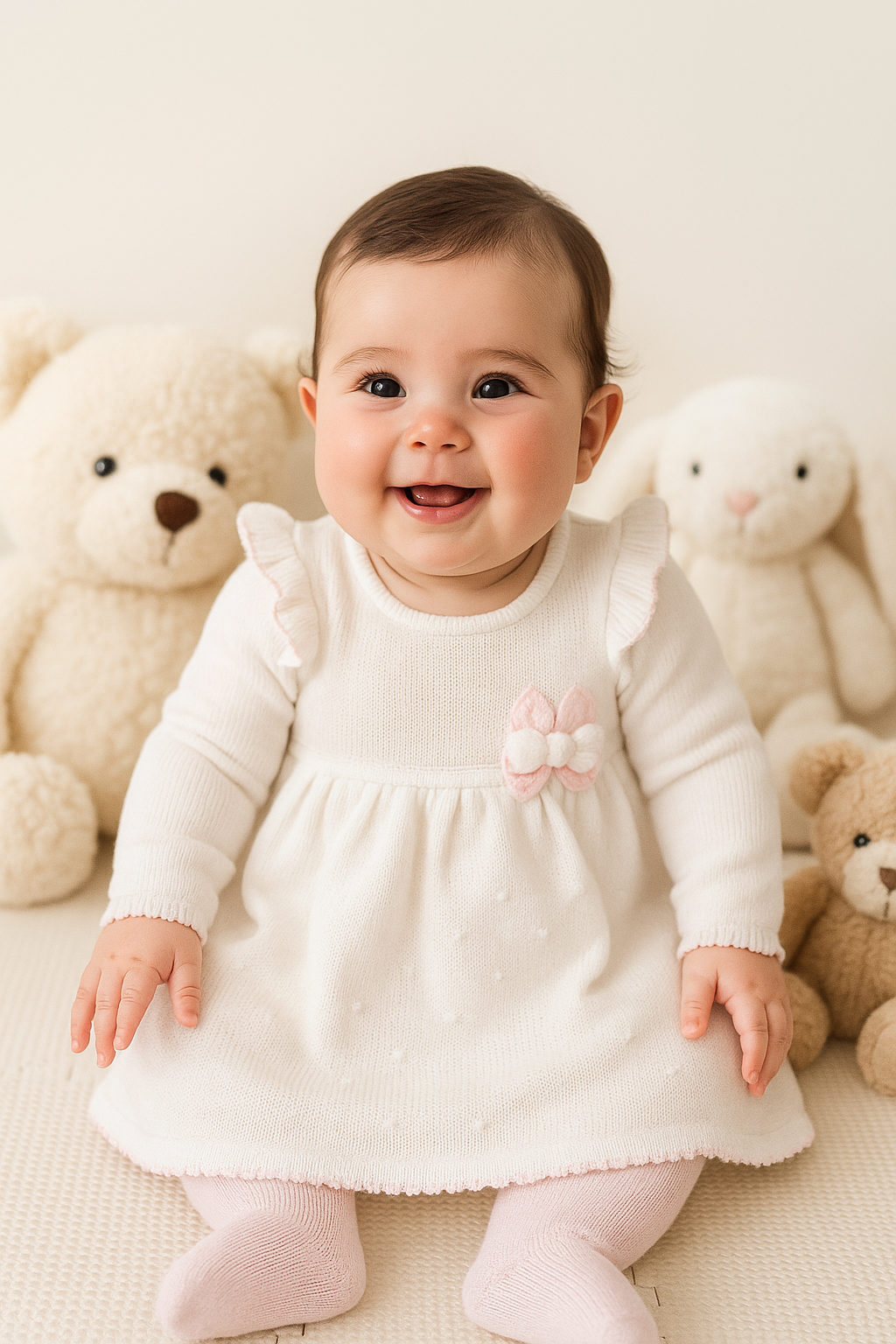 Este suave CONJUNTO MOTITA está hecho de algodón y poliéster, brindando un tacto suave y cómodo para su bebé. El diseño en color blanco y rosado añade un toque dulce y femenino. ¡Perfecto para tu pequeña princesa!