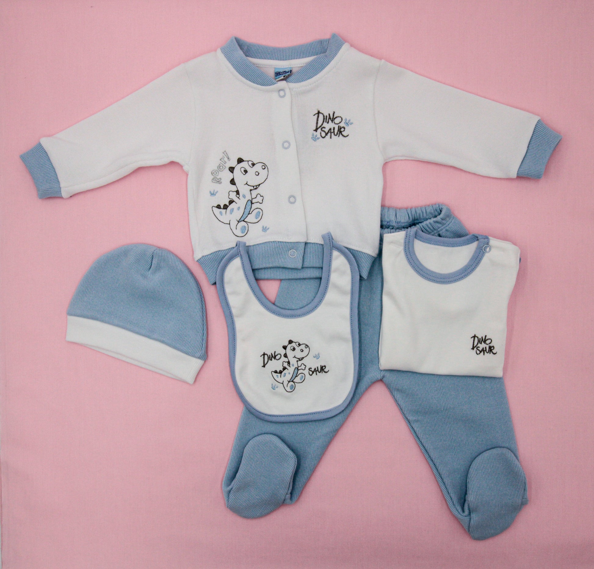 El CONJUNTO VARONCITO DINOSAUR es el complemento perfecto para tu bebé. Confeccionado en color celeste, este ajuar de punto inglés es suave, cómodo y seguro para la piel delicada de tu pequeño. Dale un toque de estilo a tu guardarropa con este adorable conjunto.