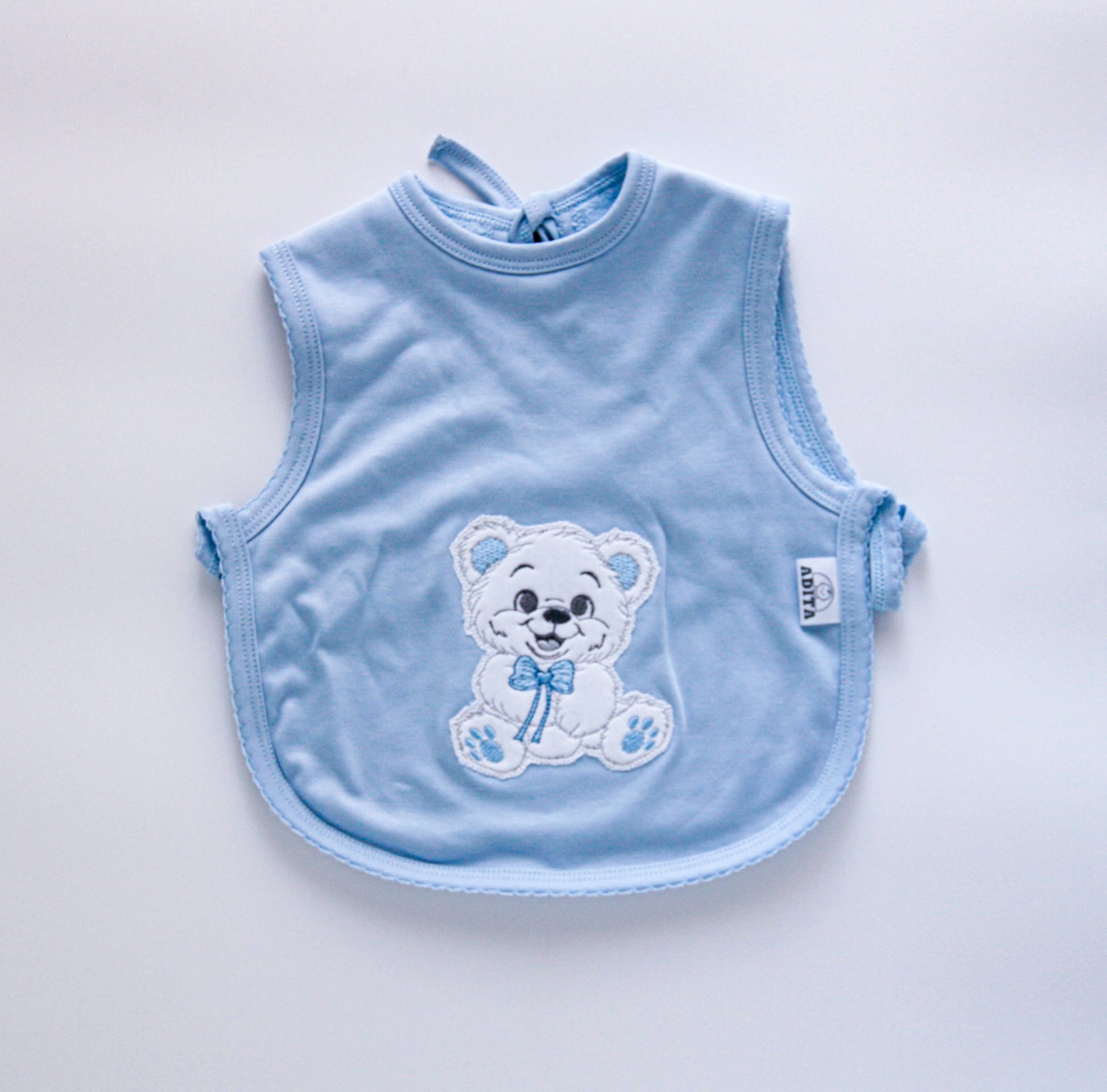 Este babero mandil de color celeste con detalles de bordado, diseñado especialmente para bebés. Con su tamaño y forma, protege la ropa de tu bebé de manchas y derrames mientras juegas. Además, su material suave y absorbente mantiene a su bebé cómodo y seco. Una opción práctica y conveniente para padres.