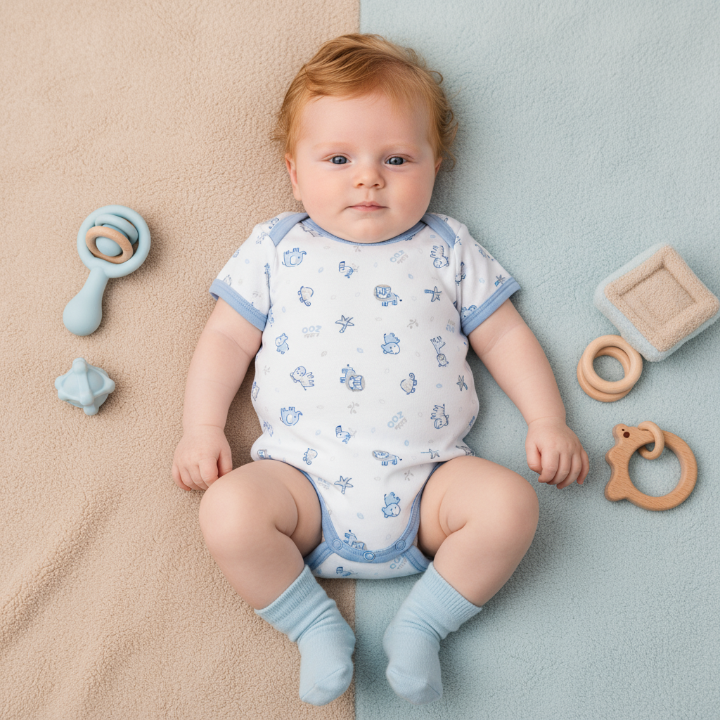 Este body de manga corta estampado en tono lila está confeccionado con algodón pima hipoalergénico, ideal para la delicada piel del bebé. Su tejido suave y transpirable garantiza comodidad y protección, mientras que el diseño estampado aporta un toque de estilo. Perfecto para el uso diario, combina calidad y cuidado en una prenda esencial para el armario infantil.