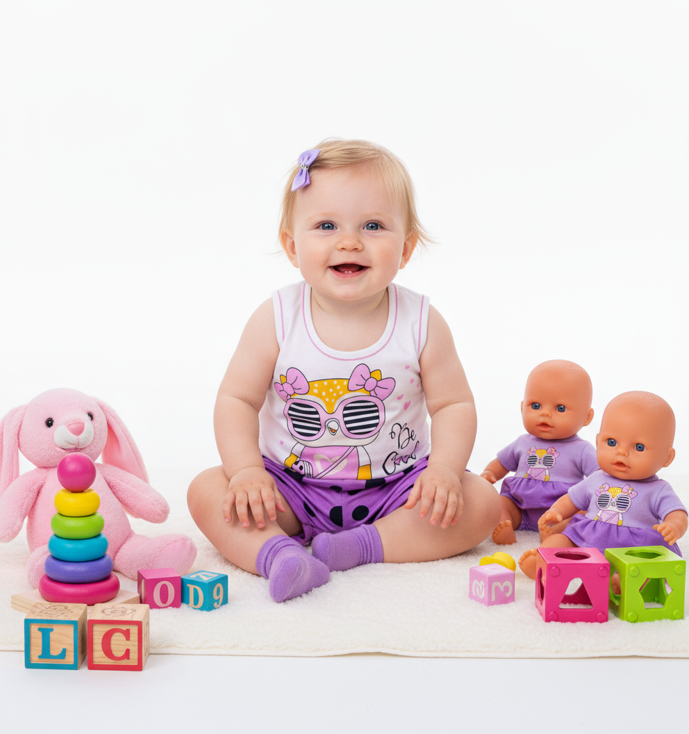Este conjunto para niña de Be Cool está confeccionado en algodón pima hipoalergénico, lo que garantiza una mayor suavidad y comodidad para la piel sensible de tu pequeña. Además, el diseño de Be Cool le brindará un look moderno y a la moda. ¡Haz que tu niña se sienta fresca y a la moda con este conjunto!
