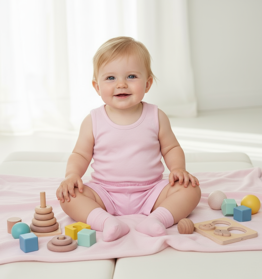 Este conjunto para bebé incluye un bividi y short confeccionados en algodón pima, reconocido por su suavidad y propiedades hipoalergénicas. Ideal para pieles sensibles, ofrece comodidad y protección durante todo el día, asegurando un tacto delicado y transpirable para el cuidado óptimo del bebé.
