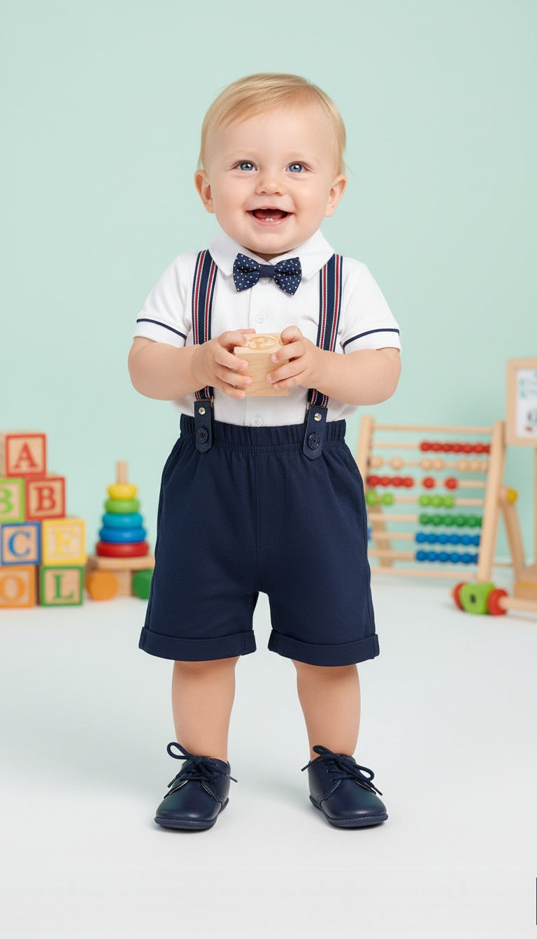 CONJUNTO ELEGANTE Polo Blanco - Short Azul