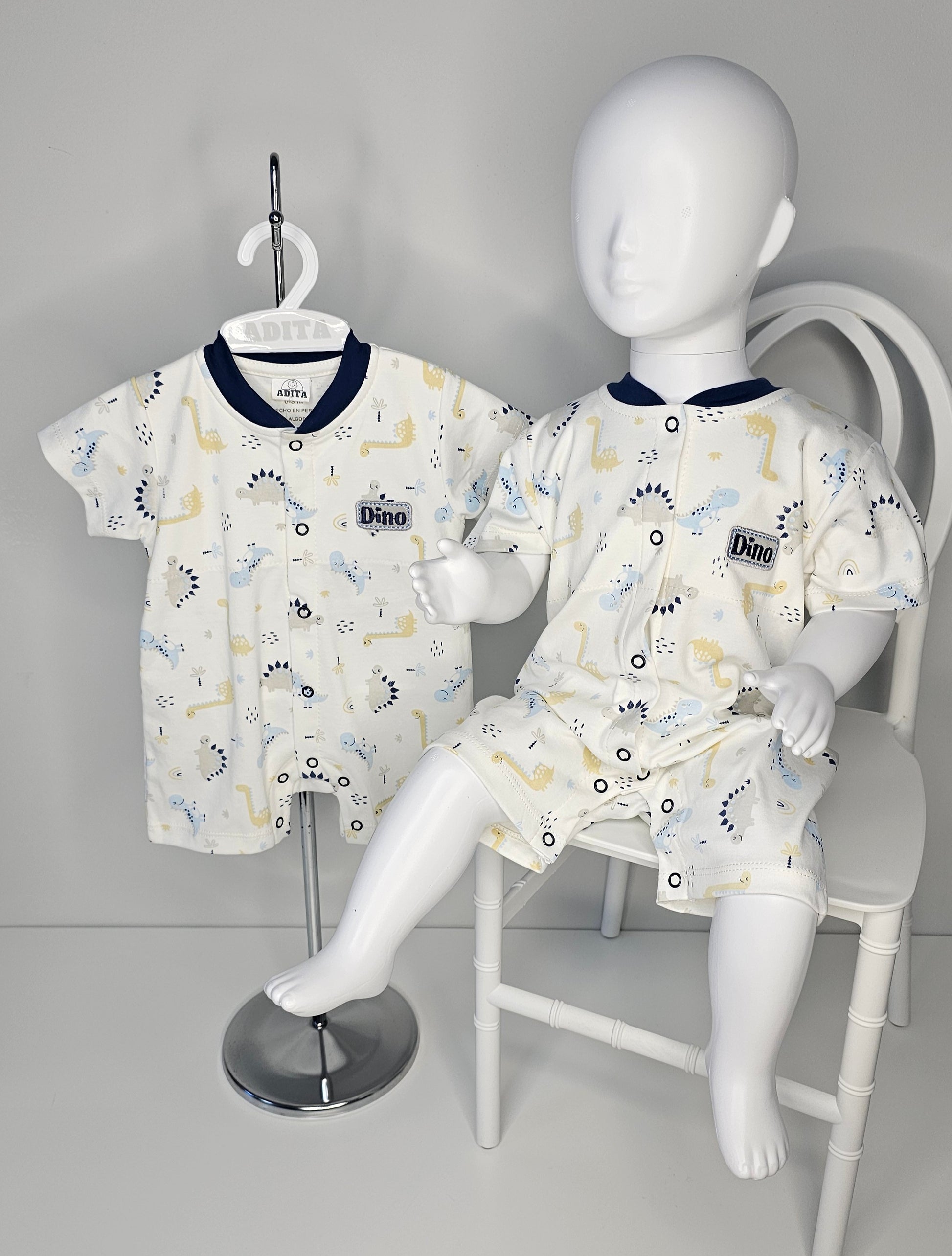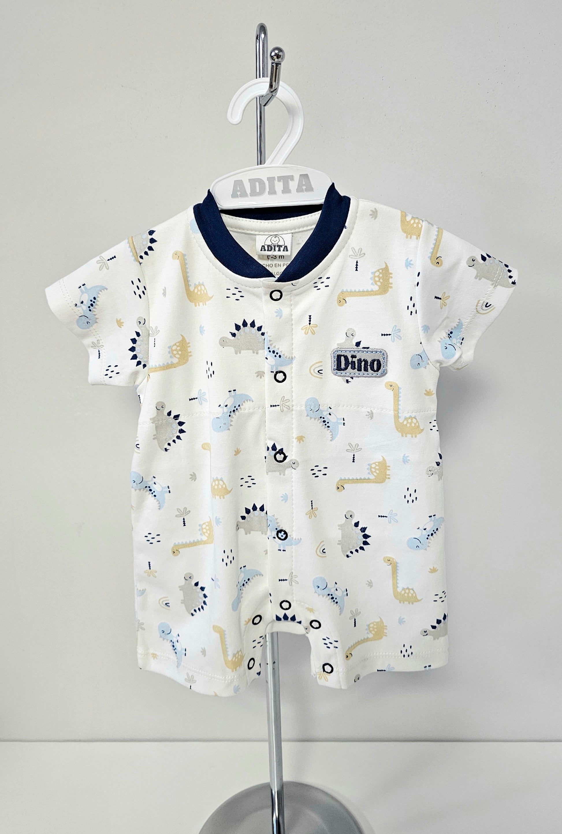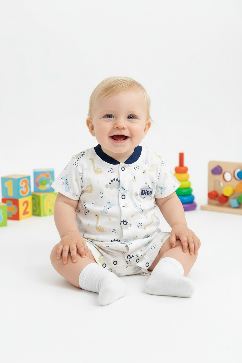 El ENTERIZO DINO REX EN COLOR ACERO está elaborado con algodón pima, lo que lo hace suave y cómodo para tu bebé. Con su divertido diseño de dinosaurio, tu pequeño estará a la moda y listo para explorar. ¡Haz que tu bebé destaque con este enterizo exclusivo!
