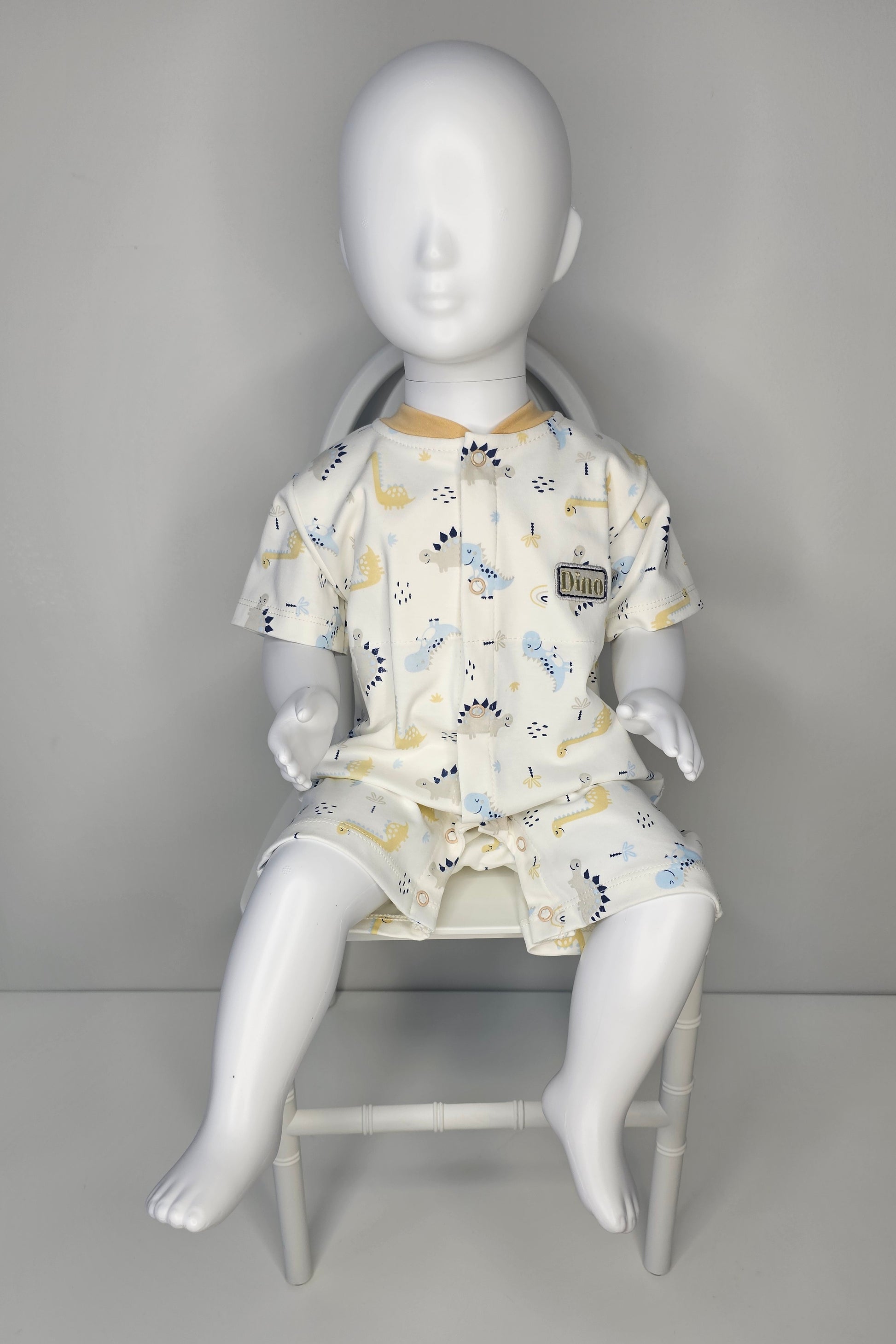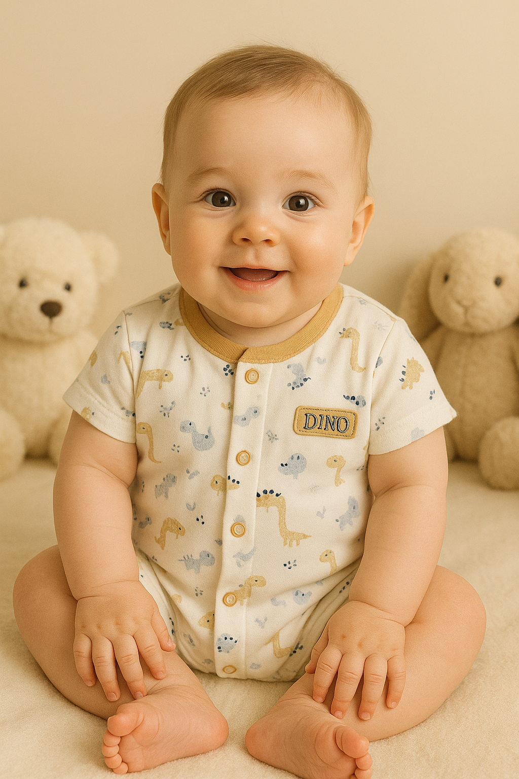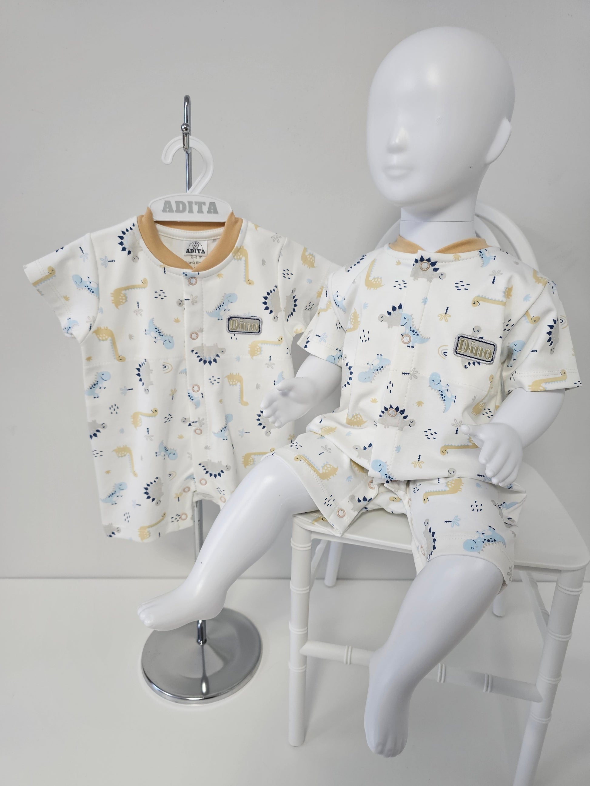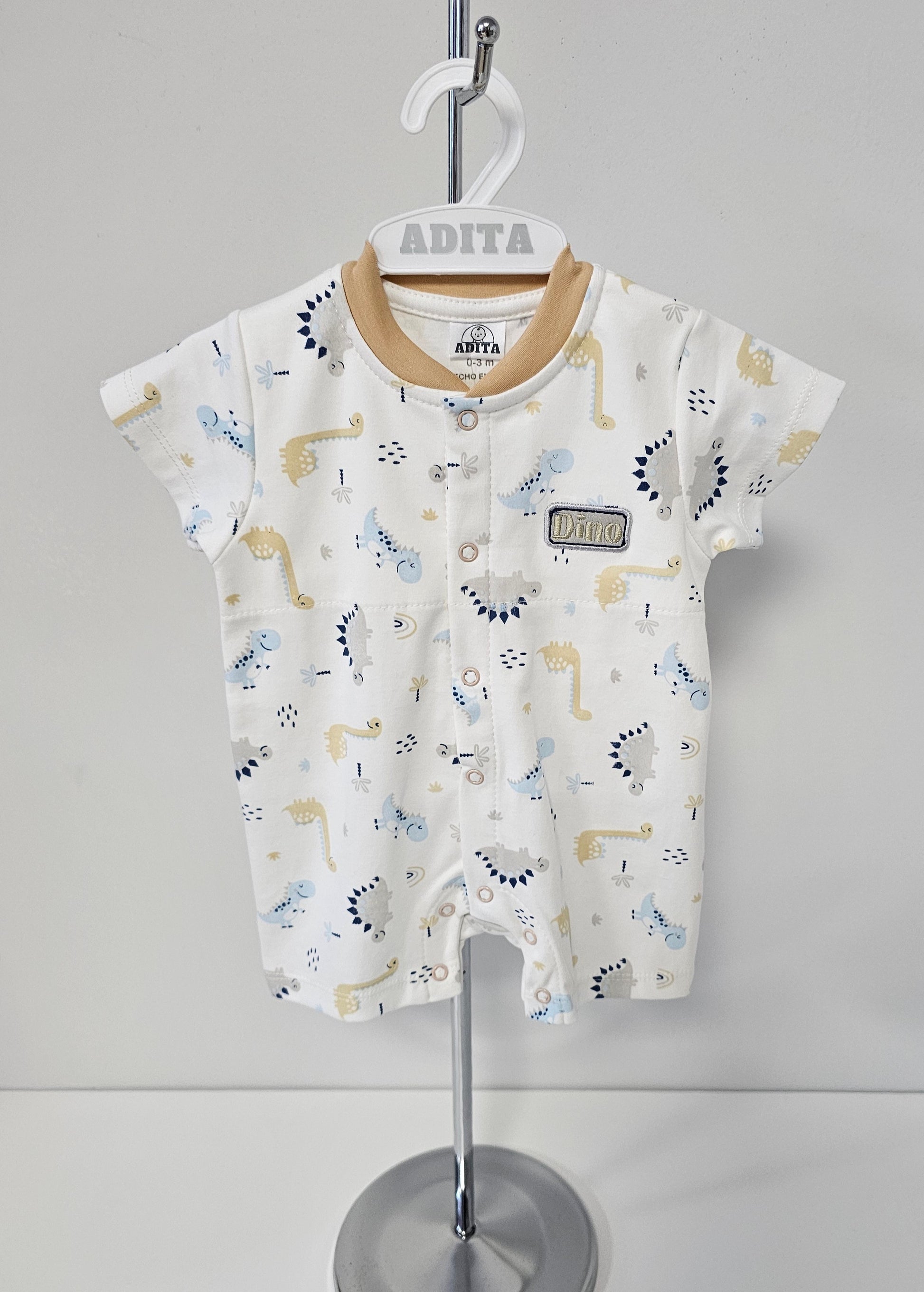 El ENTERIZO DINO REX EN COLOR BEIGE está elaborado con algodón pima, lo que lo hace suave y cómodo para tu bebé. Con su divertido diseño de dinosaurio, tu pequeño estará a la moda y listo para explorar. ¡Haz que tu bebé destaque con este enterizo exclusivo!