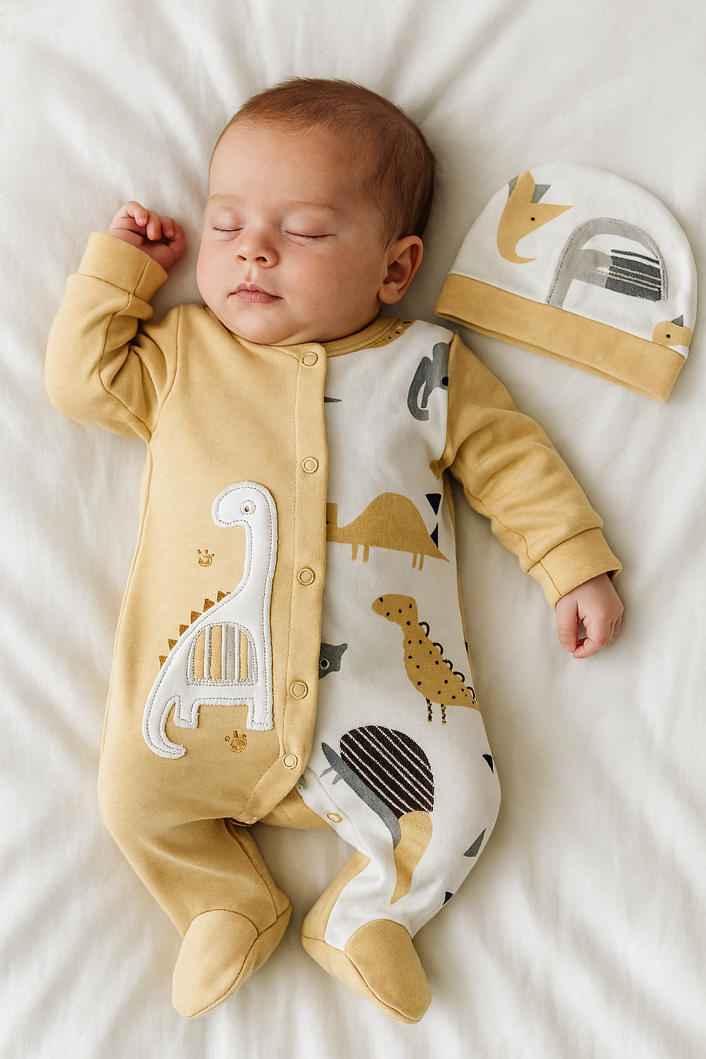 Este enterizo largo para niño en color beige es el conjunto perfecto para cualquier ocasión. Con un diseño divertido de jurásicos, tu pequeño se verá a la moda y cómodo. Fabricado con materiales de alta calidad para garantizar durabilidad y comodidad a tu pequeño aventurero.