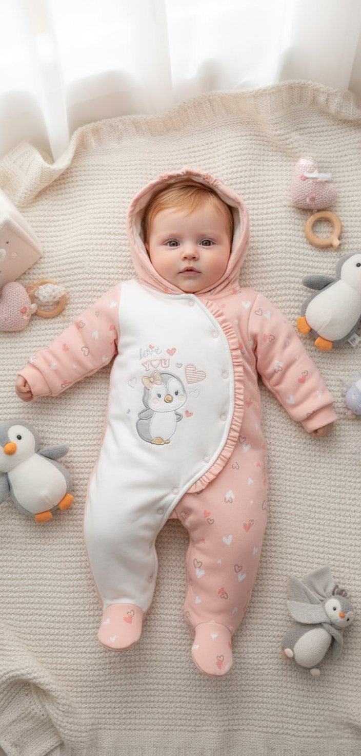 El enterizo Snow Chic en color melón está diseñado especialmente para bebés. Está confeccionado con algodón pima, lo que asegura suavidad y comodidad para la piel delicada de tu bebé. Aporta un estilo elegante y moderno a tu pequeña, mientras la mantiene cómoda y abrigada. ¡Perfecto para cualquier ocasión!