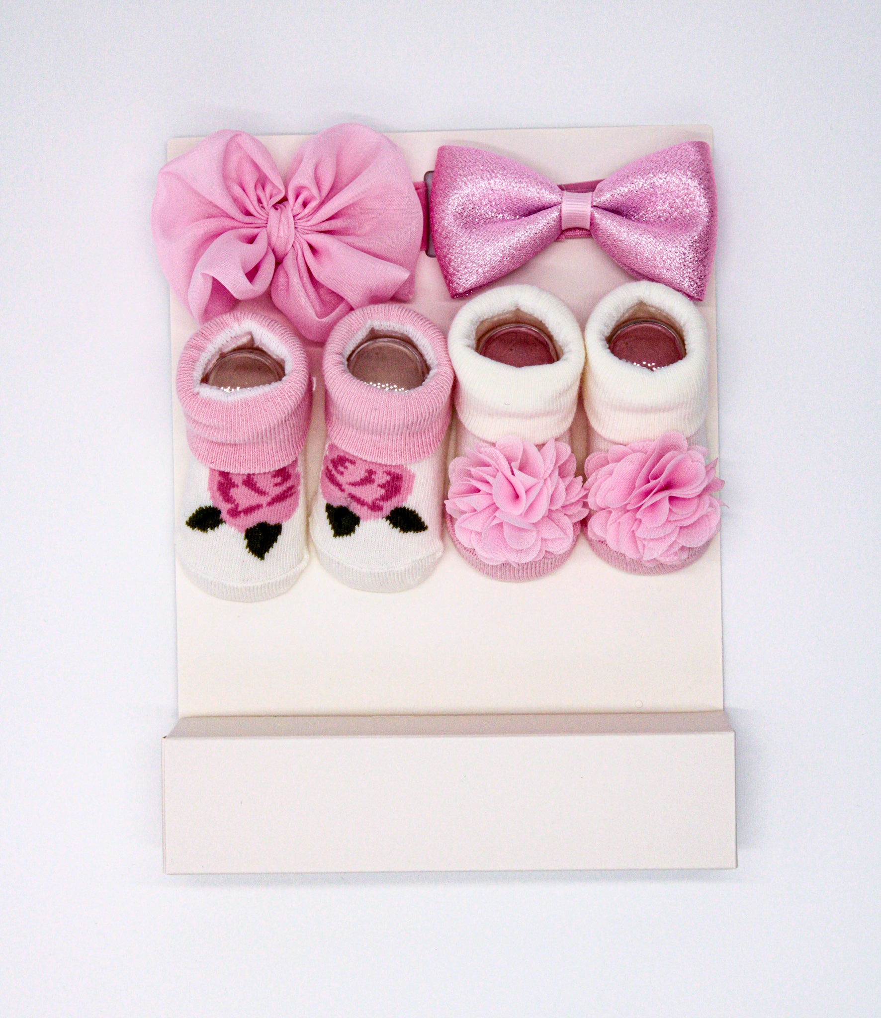 Luxury Essentials Kit: Socks & Hair Accessories in Pastel Blush / Misty Rose