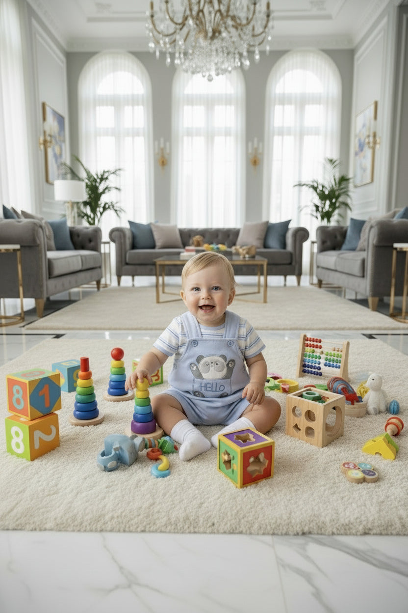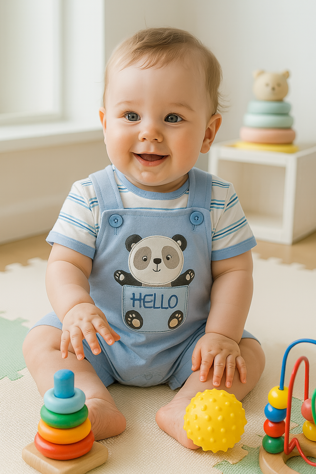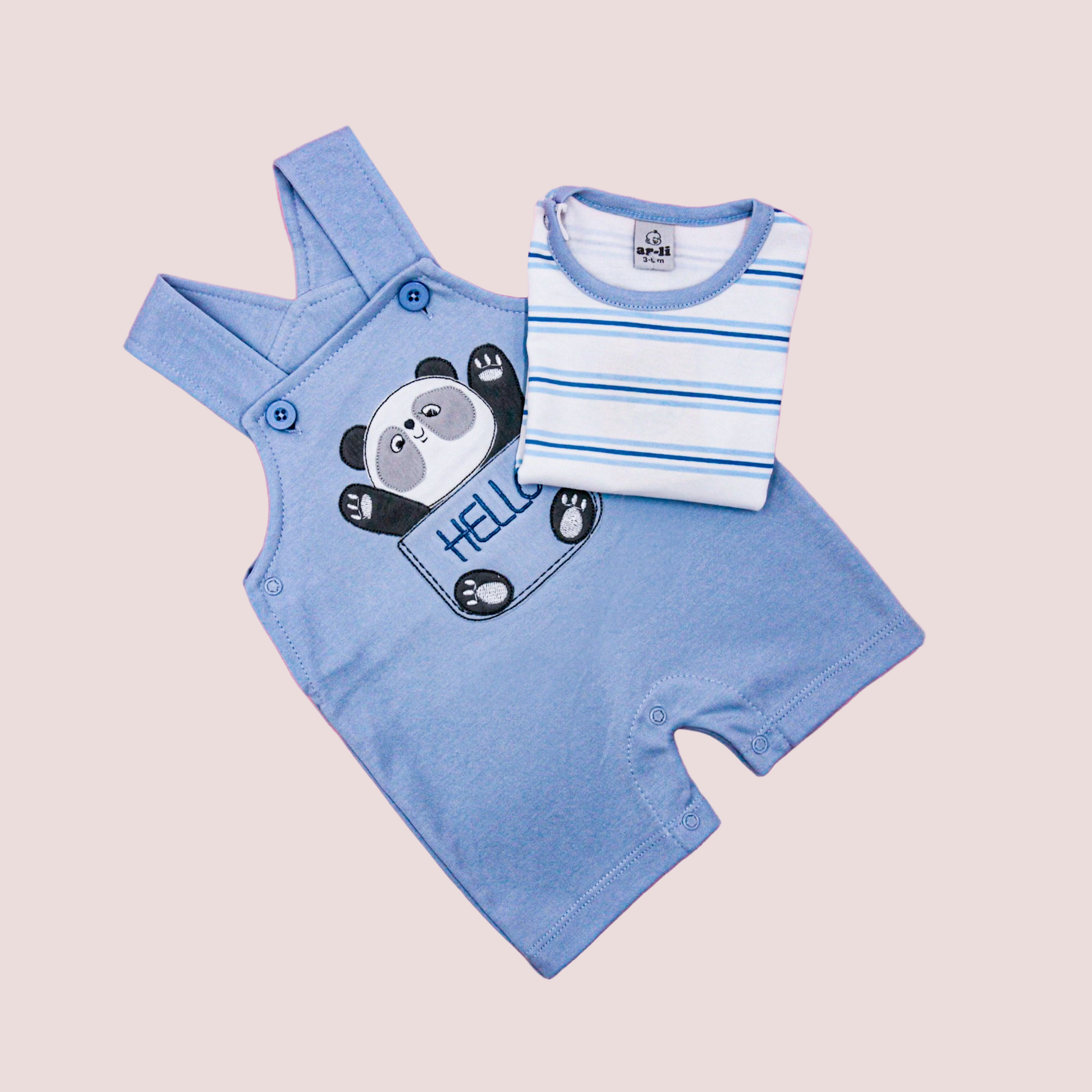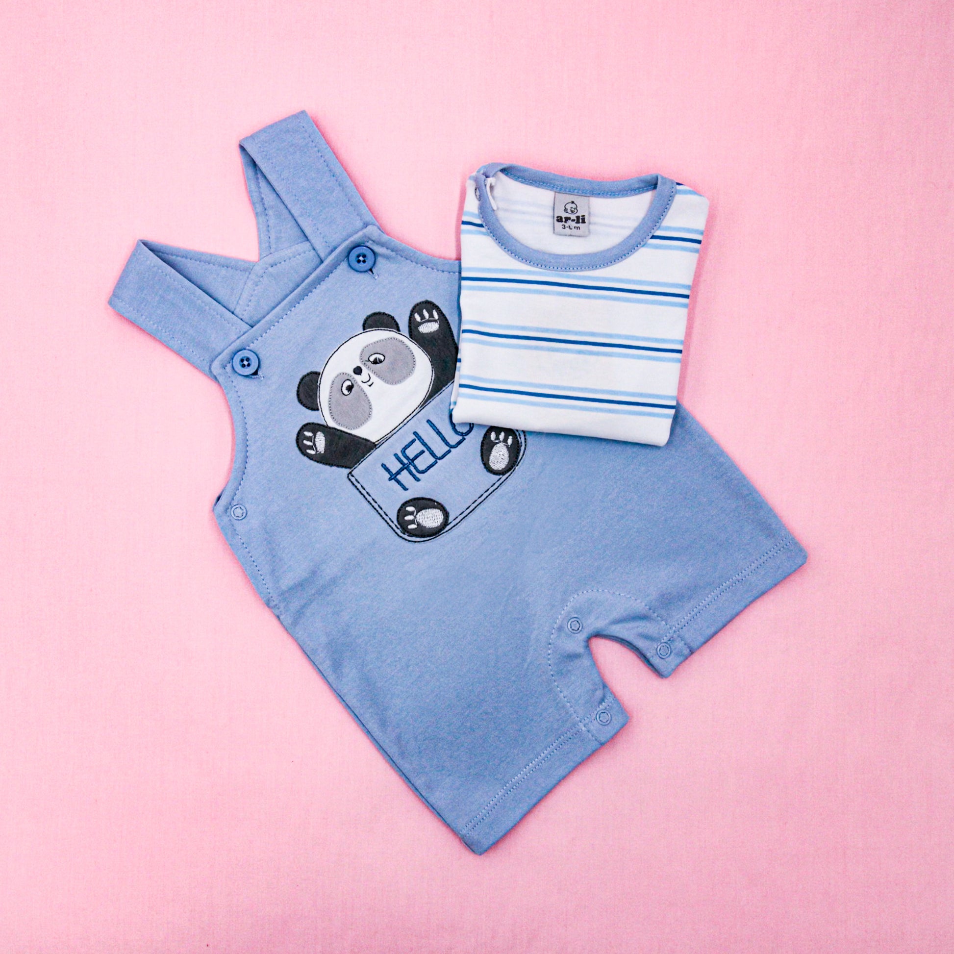 ¡Viste a tu pequeño con estilo con nuestro Overol Varoncito Pandita! Con un moderno diseño de overol corto en color celeste y un lindo polo a juego, tu bebé lucirá a la moda y cómodo al mismo tiempo. ¡No te pierdas esta oportunidad de vestir a tu pequeño con lo mejor!