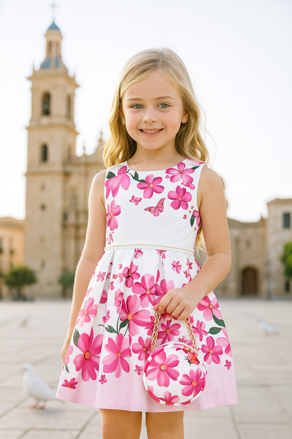 Nuestro VESTIDO ADELA CON CARTERA en color rosa barbie, con estampado de flores, está diseñado con una mezcla de algodón y poliéster, lo que lo hace suave y cómodo para las niñas. Además, su elegante cartera le da un toque perfecto para cualquier ocasión. ¡Viste a tu pequeña con estilo y comodidad con nuestro vestido!