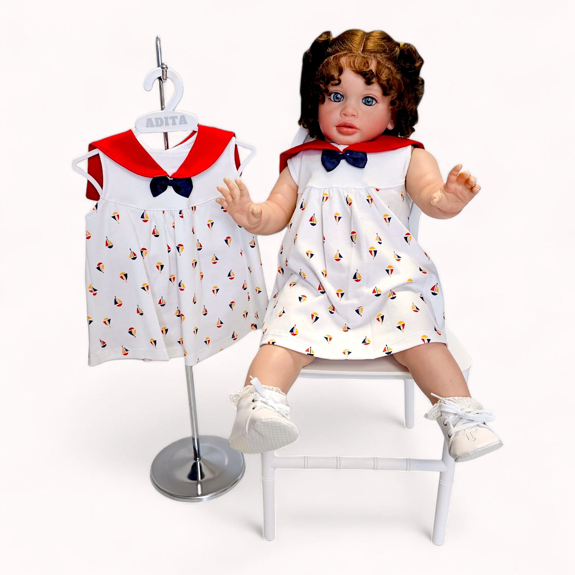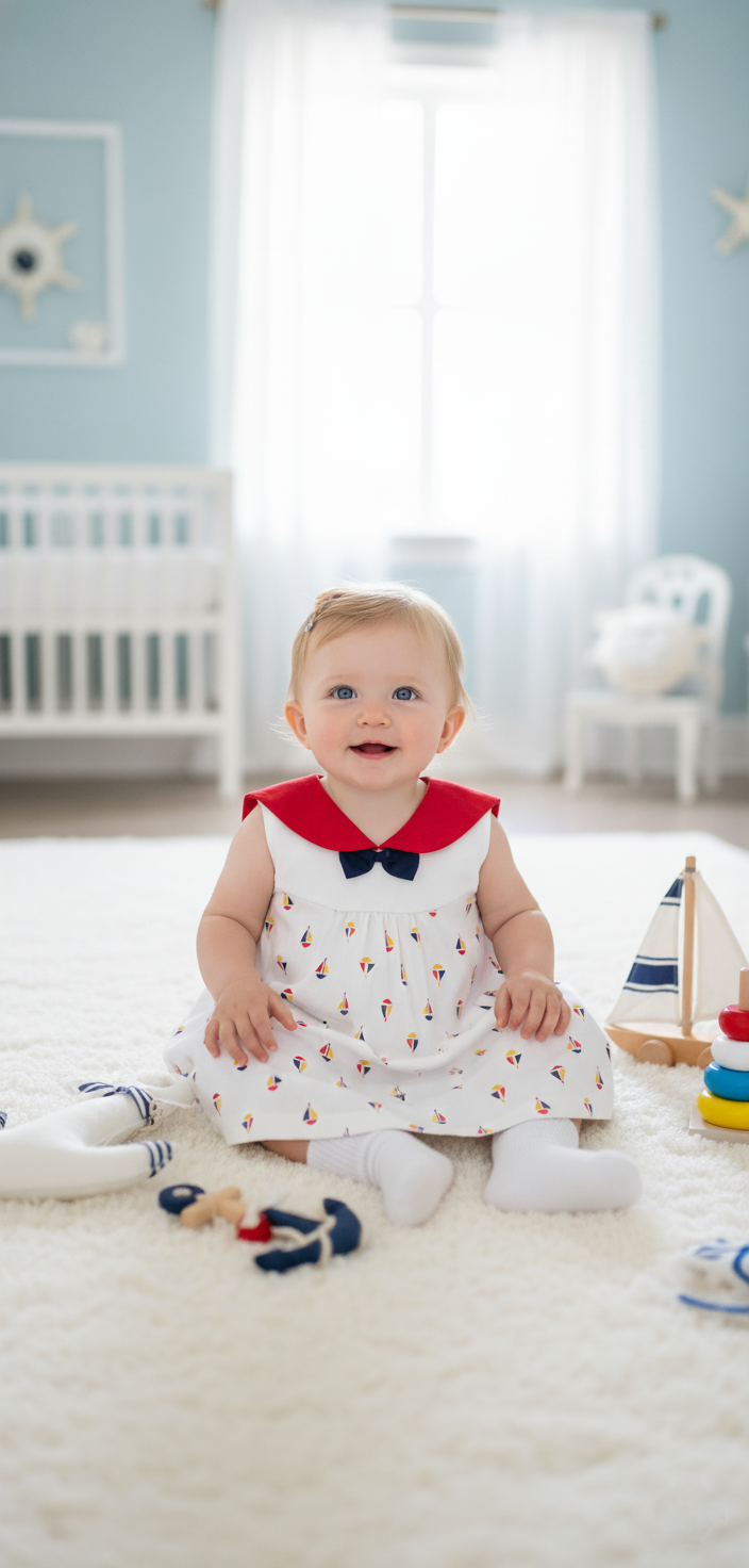 Confeccionado con algodón pima hipoalergénico, el vestido de Agua Marina de color rojo es perfecto para el cuidado de la piel delicada de tu bebé. Su suave tela y diseño en tono marino brindan comodidad y estilo. ¡Haz que tu pequeña luzca hermosa y protegida!