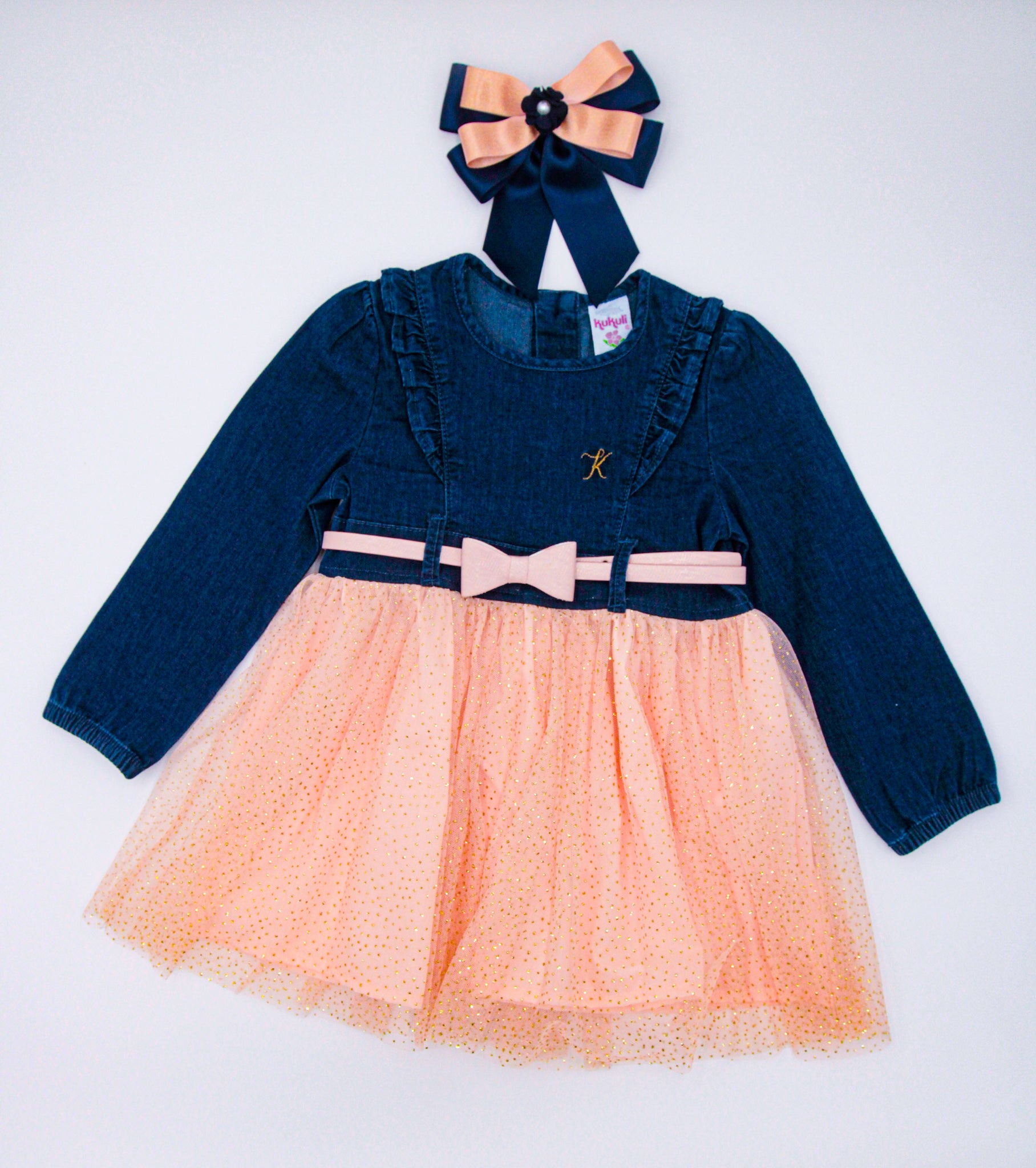 El VESTIDO SABINA CON TULL Y CORREA en hermoso tono melón y azul es perfecto para cualquier niña. Con su diseño de tull y la correa ajustable, aporta comodidad y estilo a la vez. ¡Un vestido ideal para cualquier ocasión especial!